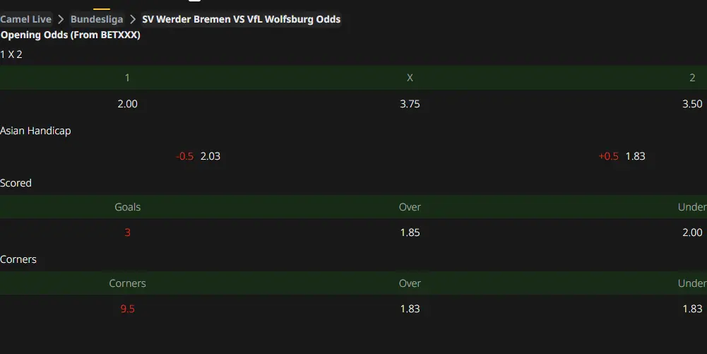 Bundesliga : Werder Bremen vs VfL Wolfsburg Prediction & Betting Tips