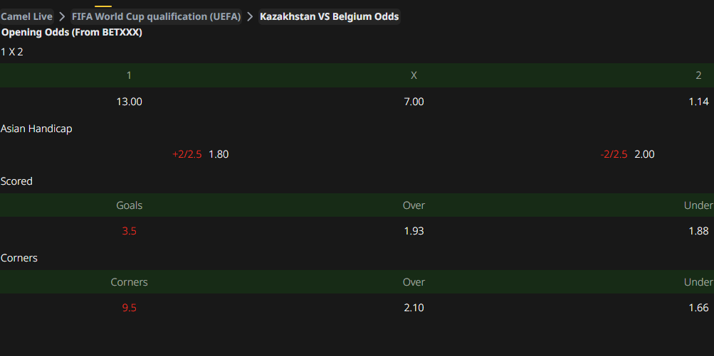 FIFA World Cup Qualifiers (UEFA) : Kazakhstan vs Belgium Prediction & Betting Tips