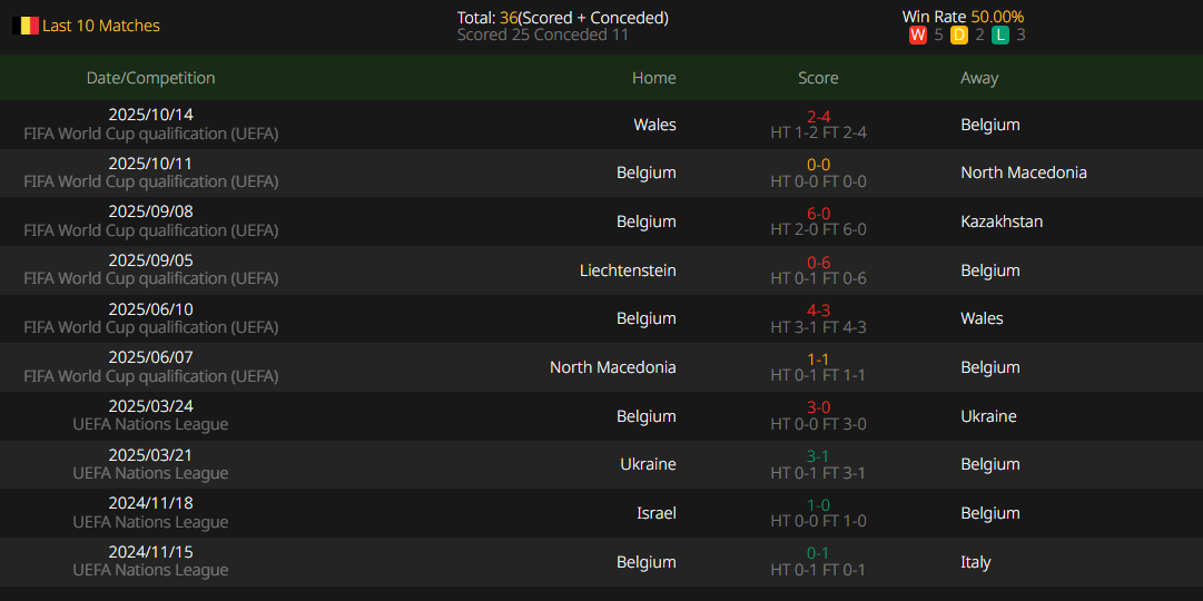 Belgium currently tops Group J with 14 points from 4 wins and 2 draws, but it only leads North Macedonia by 1 point, so the qualification situation is still uncertain. Therefore, the team cannot afford to drop points in this round. In the first leg, Belgium thrashed Kazakhstan 6-0 at home, holding an absolute head-to-head advantage. However, the absence of midfield core Kevin De Bruyne due to injury has had a significant impact on the team's offensive organization. Fortunately, Manchester City winger Jeremy Doku has been in excellent form recently—with his outstanding dribbling and finishing abilities, he is expected to become the team's offensive core and fill the gap left by De Bruyne.