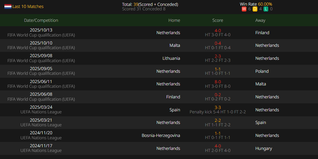 The Netherlands has remained unbeaten in all competitions this year, including two 2-2 draws with Spain. As the 2024 European Championship winner known for multi-faceted attacks, Spain's failure to beat the Netherlands also indirectly proves the solidity of the Dutch defense. The Oranje currently leads the second-placed team (Note: Original text has a typo, corrected to "the second-placed team" from "the Netherlands") by 3 points, and fully holds the initiative to qualify as group leaders. Even if it fails to win away against Poland in this round, it will face no pressure in the final home game against Lithuania. Therefore, the Netherlands may rotate some players in this round to enhance coordination with substitutes. The team has integrated the philosophy of total football into modern tactics, and the 3-4-3 formation makes offensive and defensive transitions more flexible. The technical midfielders' short-pass penetration is precise and efficient, capable of breaking through the opponent's defense through continuous passing; the overlapping runs of wing-backs constantly widen the offensive width, and the off-the-ball movement and interlacing in the frontcourt create rich offensive layers.
