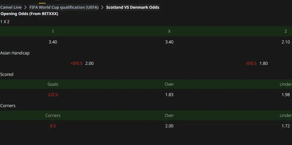 In terms of Asian Handicap, the initial line opened with Denmark as -0.25 favorites. Historical head-to-head records show that Denmark has the upper hand in the last 5 encounters, but Scotland’s home record cannot be underestimated—they have only lost 2 of their last 10 home matches, with an average of less than 0.8 goals conceded per game. Statistically, Scotland averages 14.2 shots per game but only a 31% shot-on-target rate, so their offensive conversion efficiency urgently needs improvement; Denmark leads the group with a 56% possession rate and 82% pass success rate, with significantly superior midfield organization. In addition, Denmark’s set-piece goals account for 28% of their total, which may be the key to breaking the deadlock in this match. Overall, the general trend of this match leans towards Denmark. Although Scotland is playing at home, Denmark is generally stronger in terms of strength. Therefore, this match is worth supporting Denmark to remain unbeaten away from home, and they are very likely to secure a narrow victory.