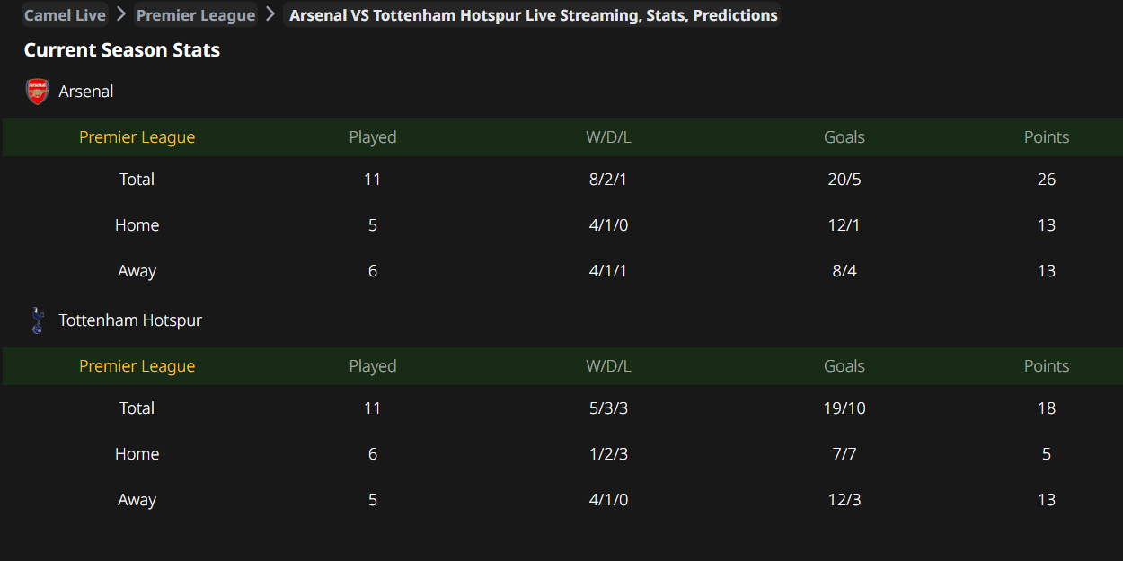 How to watch the Premier League match Arsenal VS Tottenham Hotspur, as well as kick-off time and team news