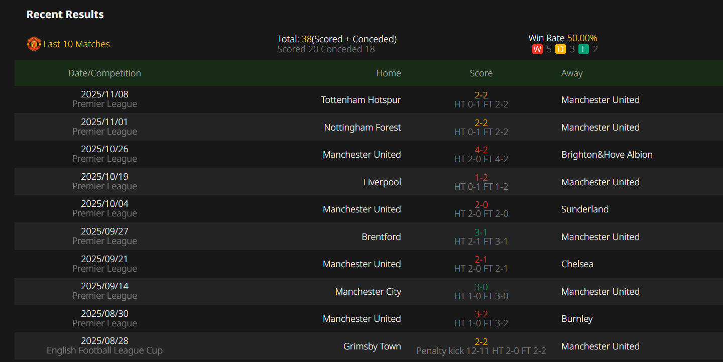Ruben Amorim's side have gone five without a defeat and are currently enjoying their best spell under the Portuguese manager. They would, however, be disappointed for not winning their previous two encounters. Having led till the 84th minute against Tottenham Hotspur away from home, they had to depend on a 96th-minute equaliser from Matthijs de Ligt to escape with a point. It was the same case against Nottingham Forest as well. Amad Diallo's stunner helped them rescue a point. The Red Devils are showing clear signs of improvement, but they have to be ruthless during crucial junctures to secure wins.