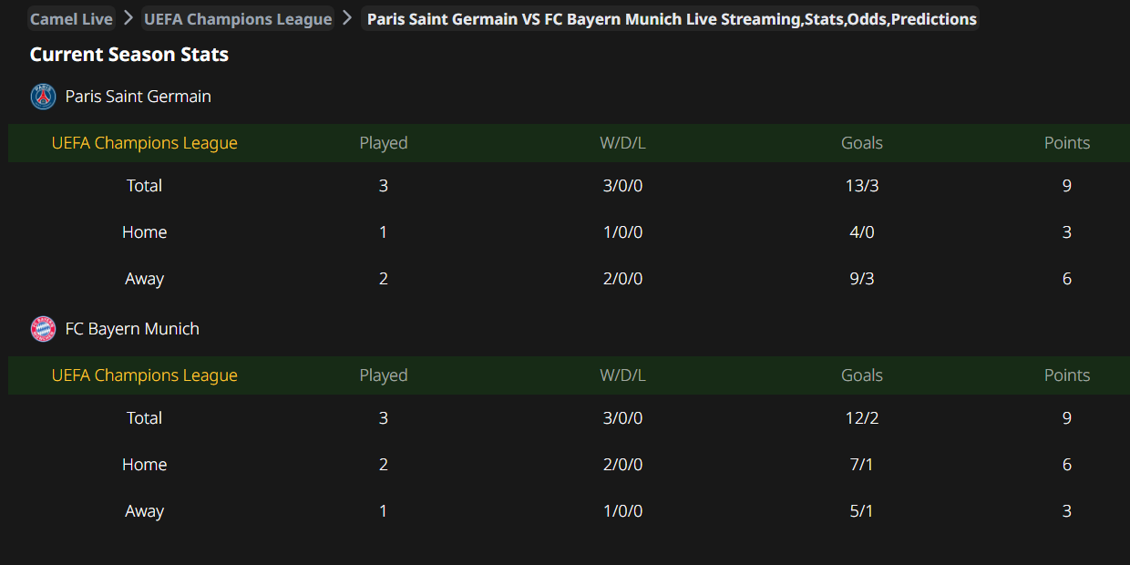 PSG and Bayern Munich sit atop the 2025–26 Champions League league phase standings, each with a perfect record of three wins in three matches. Yet come the final whistle at the Parc des Princes, perfection will only be an option for one.