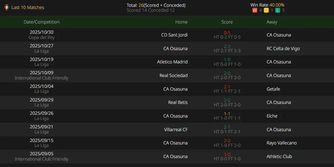 Osasuna has been able to stay in the middle of the La Liga standings in the past few seasons. The club made a coaching change in the summer transfer window, bringing in young Italian coach Ivan Juric to take charge. However, Osasuna’s performance at the start of the season has been unsatisfactory, and they can only rank in the lower-middle reaches of the standings—only one step away from the relegation zone. Osasuna has suffered two consecutive defeats in their past two league games. Although the team defeated an amateur team in the Copa del Rey last midweek to catch their breath, coach Ivan Juric needs to quickly turn Osasuna’s fortunes around in the league. Otherwise, his managerial position may be in trouble during the international break window.