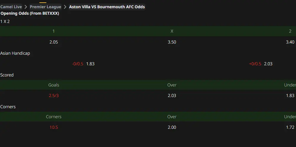 Premier League : Aston Villa VS Bournemout Prediction & Betting Tips