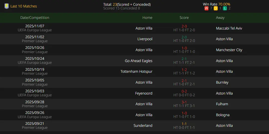 After a slow start to the season, Aston Villa has gradually found their form, currently ranking 12th in the league with 4 wins, 3 draws and 3 losses, accumulating 15 points. In the midweek European game, the team defeated Maccabi Tel Aviv 2-0 at home, continuing their recent good form. However, the team is much worse than last season, and their overall competitiveness has actually declined a lot. In many games this season, they have lost the control they showed last season. Nevertheless, Emery is after all a top coach with strong adjustment ability. In the recent games, Villa has obviously started to recover. Although there is still a certain gap compared with last season, it is no problem to position them as a mid-to-strong team in the league. Facing the dark horse Bournemouth in this game, the team's goal is definitely 3 points.