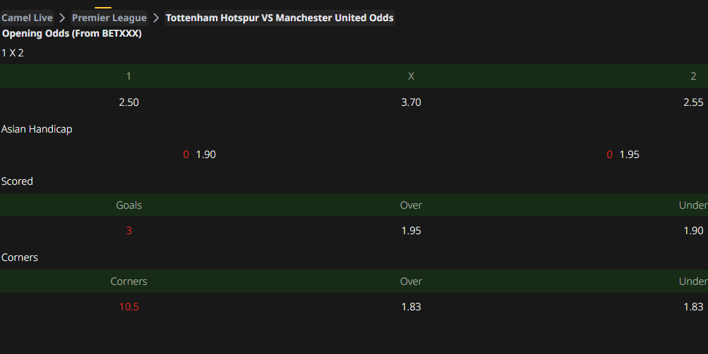 Premier League : Tottenham Hotspur VS Manchester United Prediction & Betting Tips