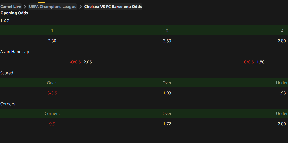 UEFA Champions League : Chelsea vs Barcelona Prediction & Betting Tips