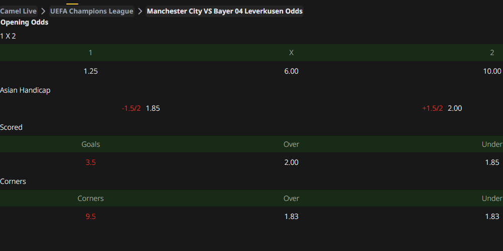 UEFA Champions League : Manchester City vs Bayer Leverkusen Prediction & Betting Tips