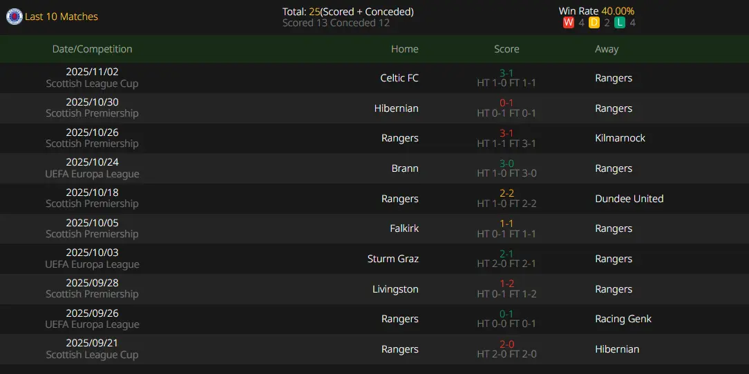 Rangers FC is currently in a desperate situation—losing all three Europa League group stage matches, accumulating 0 points and a goal difference of -5, ranking last in the group. Another defeat in this match will basically end their European campaign this season. The team’s form has plummeted recently, winning only 1 out of their last 8 matches across all competitions, with their attack and defense system almost collapsing—scoring an average of only 0.33 goals per game in the Europa League, netting just 1 goal in 3 matches (scored by forward Fashion Sakala, No. 23), while conceding an average of 2 goals per game and shipping 6 goals in their last 3 Europa League matches.To make matters worse, the team is plagued by serious injuries and suspensions: five key players are sidelined, including defensive mainstays Dujon Sterling (Achilles tendon injury), Rafael Fernandes, midfielder Kieran Dowell, and forward Rabbi Matondo (knee injury). First-choice right-back Aarons is also suspended due to a red card, leaving the team with limited rotation options. They can only stick to the pragmatic 3-4-2-1 formation, relying on set pieces to break the deadlock (set-piece goals account for 41% of their total in the last 5 matches). However, home advantage is the team’s last trump card: goalkeeper Jack Butland is experienced, left-back McGregor (No. 30) has become the defensive interception core with 7 tackles, midfielder Nicolas Raskin (No. 43) takes on the responsibility of linking attack and defense, and key midfielder Joe Rothwell (2 assists in 12 matches), who has just returned from injury, can supplement midfield stability. The heritage of 55 Scottish Premier League titles and 1 European trophy may translate into the majestic momentum of home fans’ cheers.