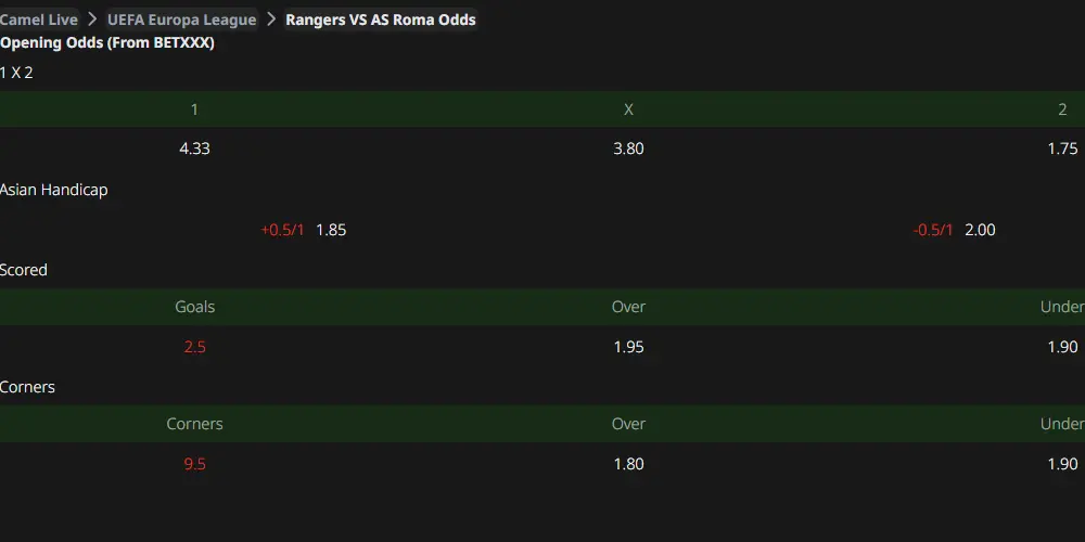 UEFA Europa League : Rangers FC vs AS Roma Prediction & Betting Tips
