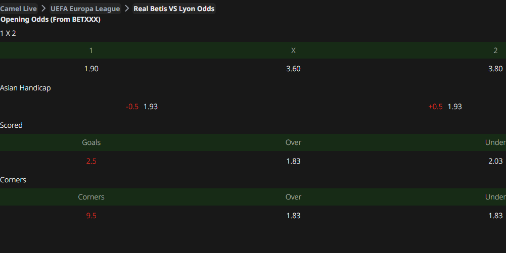 UEFA Europa League : Real Betis vs Lyon Prediction & Betting Tips